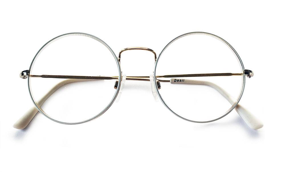 Montura metálica redonda estilo retro con reborde y terminales de color blanco o negro. Estas gafas súper fashion para hombre y mujer son perfectas para usar en cualquier ocasión.