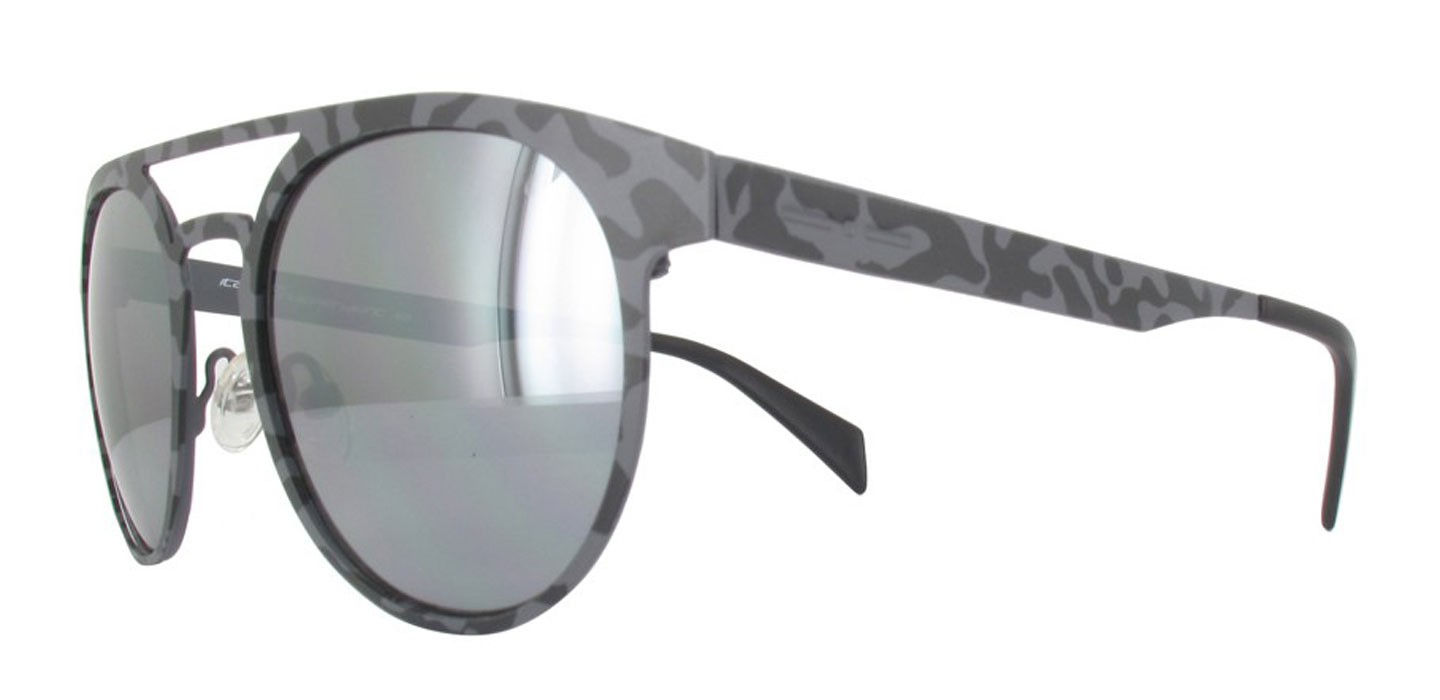 Italia Independent nos brinda este modelo masculino, de lente redondeado en gafas de doble puente, en un color negro camuflado y lentes levemente espejados, que le dan un toque moderno y casual.