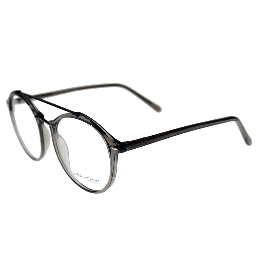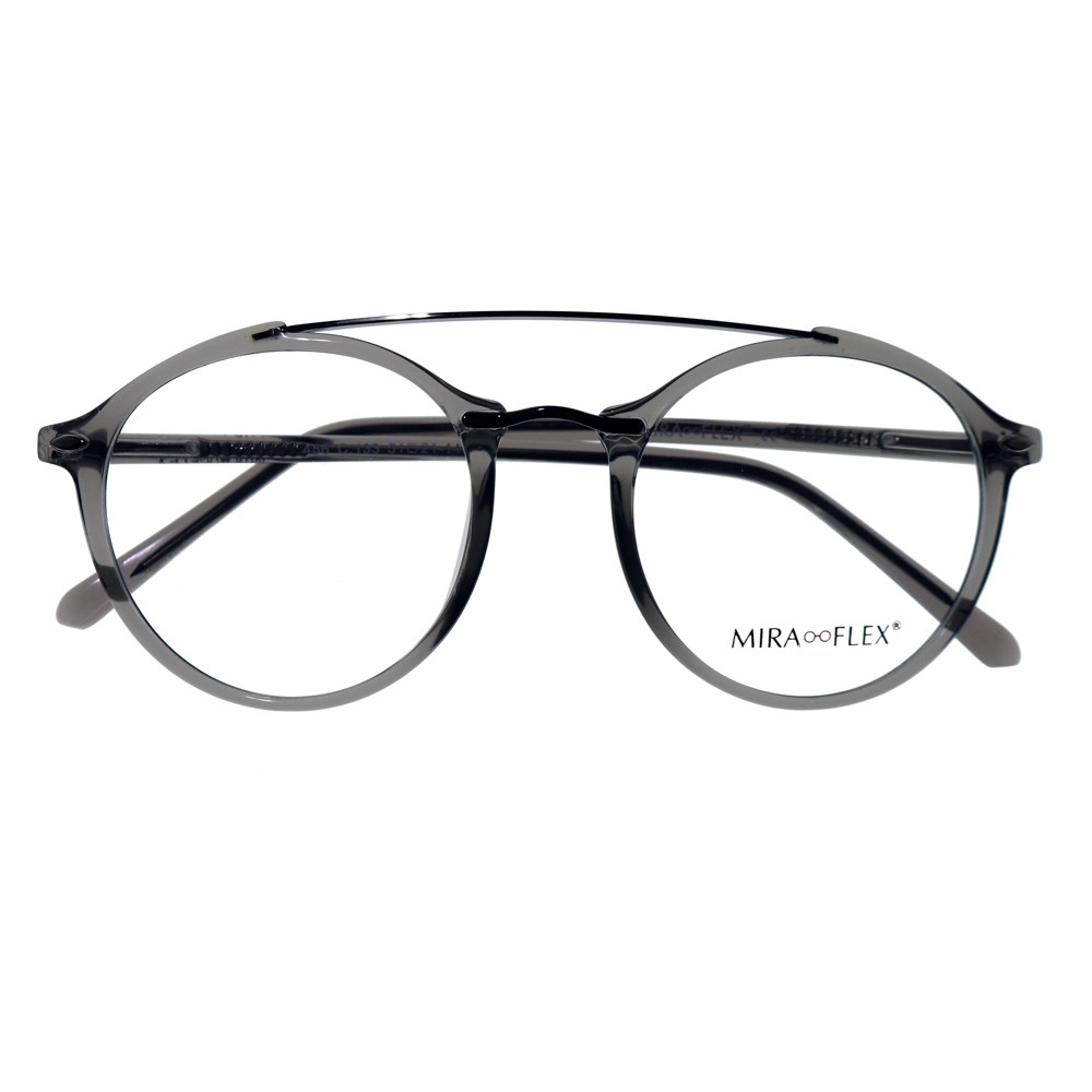 Esta montura Miraflex 456 combina un estilo aviador con gafas redondas, doble puente.