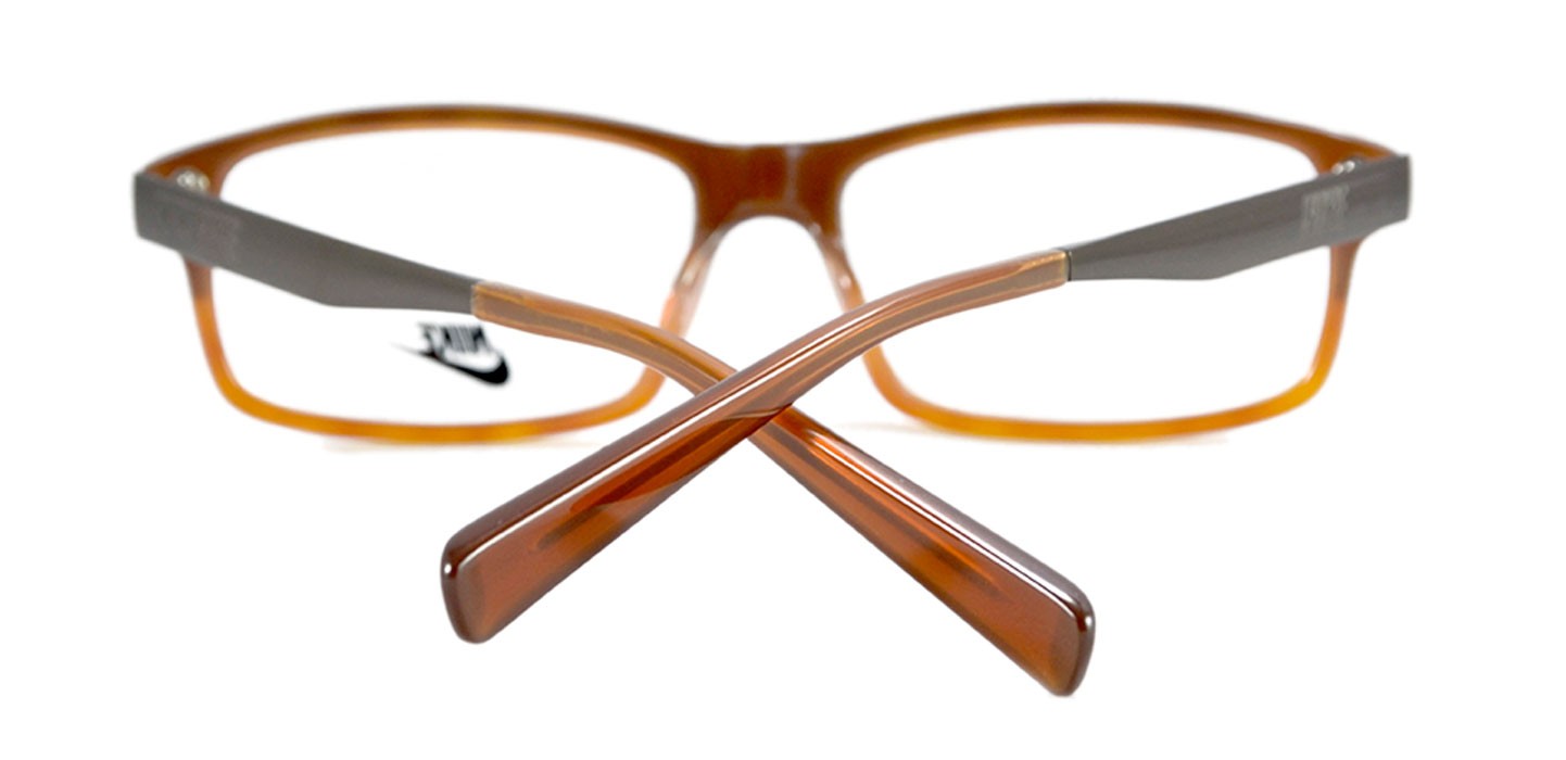 Montura en acetato, combinadas café claro y oscuro, brazos con terminales en plástico. Ideal para hombre y mujer que quieran combinar estilo con calidad. Incluye estuche original