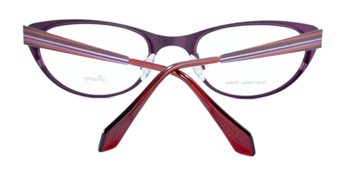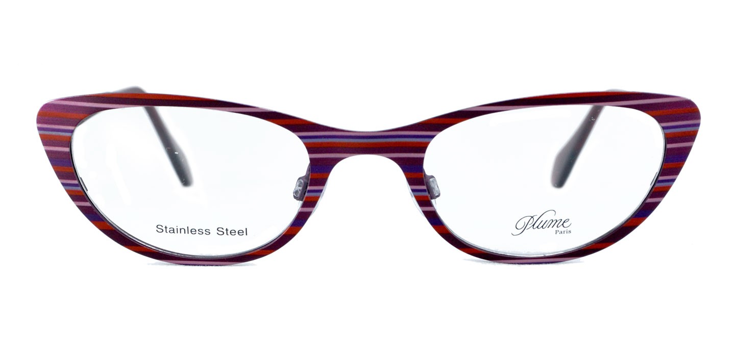 Plume Paris nos trae una colección fashion, con diseños exclusivos, modernos y presenta elementos decorativos que las hacen únicas. La montura PL Tanlay está fabricada en acero inoxidable. Presenta un marco con estampado a rayas combinando colores rojos y púrpura.