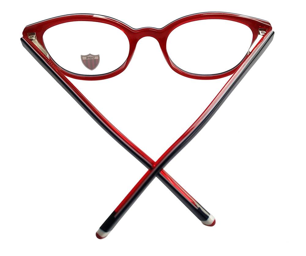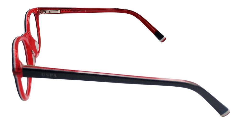 Montura de marca US Polo Assn diseñada para niños en un estilo redondeado en color azul oscuro combinado con rojo.