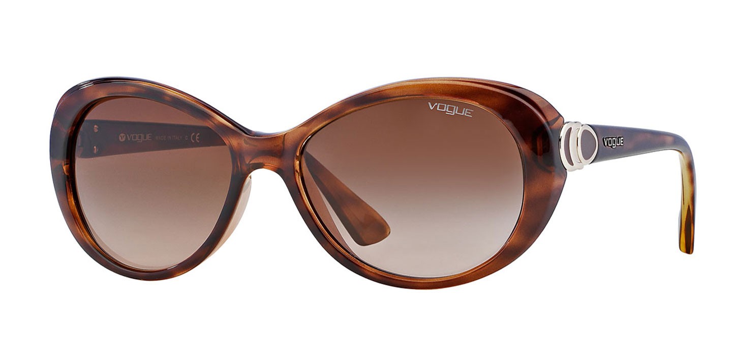 La montura VO2770S de Vogue está diseñada para mujeres en un estilo chic . Está fabricada en plástico en color habana en el frente y lentes color café degradado.