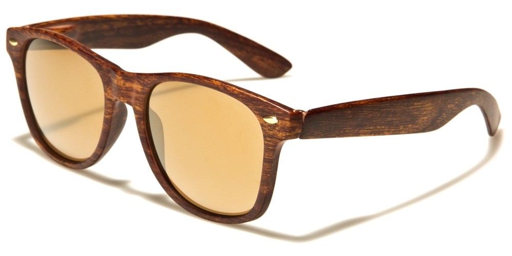 Estas gafas clásicas tipo wayfarer, con montura plástica que viene en diferentes tonos madera son ideales para mujeres y hombres que gusten de la moda clásica y moderna a la vez. Sus lentes espejados en diferentes tonalidades da un toque de misterio encantador.